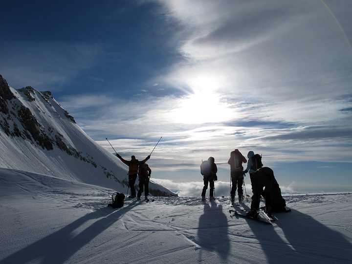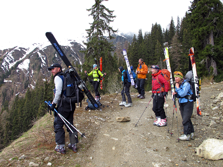 After a short ski down from the train station, we skinned up to the high col of the Louwitor. |