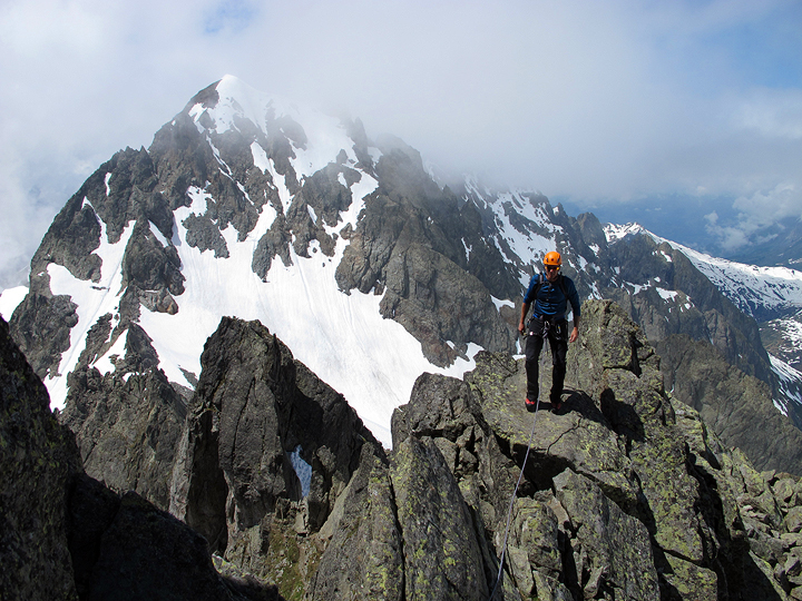 Originally hoping for two days of climbing, Graham made the quite reasonable drive over from his home in Switzerland. Unfortunately due to no-so-clement weather, we only had one day to play in the mountains. We chose the Traverse of the Aiguilles Crochues, in the Aiguilles Rouges. It was a busy day on the Crochues. Fortunately for us, the weather was fine and we were not in a great rush, so waiting here and there was no problem. |