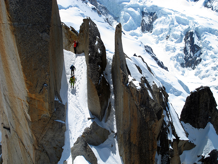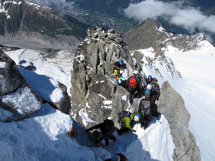 Our return to Chamonix for the evening was via the Arete des Cosmiques. Quite busy on this day. |
