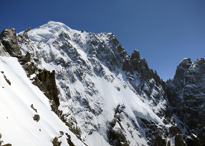 The snow-plastered north faces of the Aiguille Verte and the Drus. |
