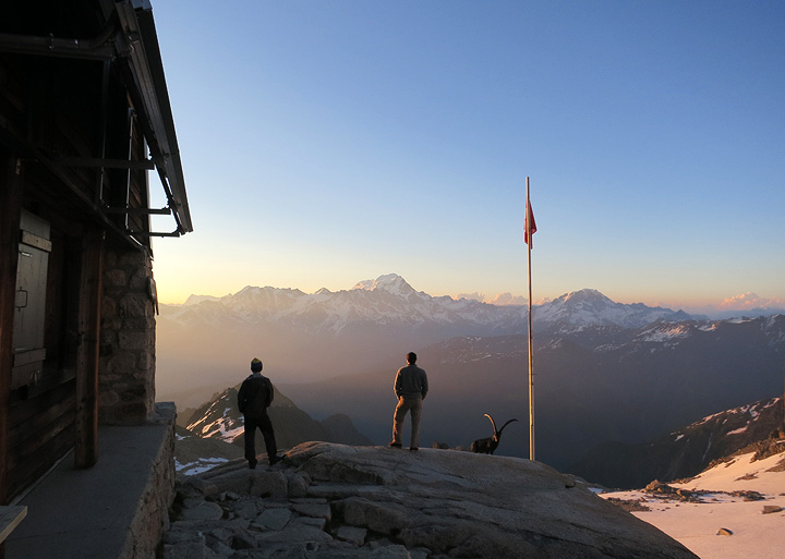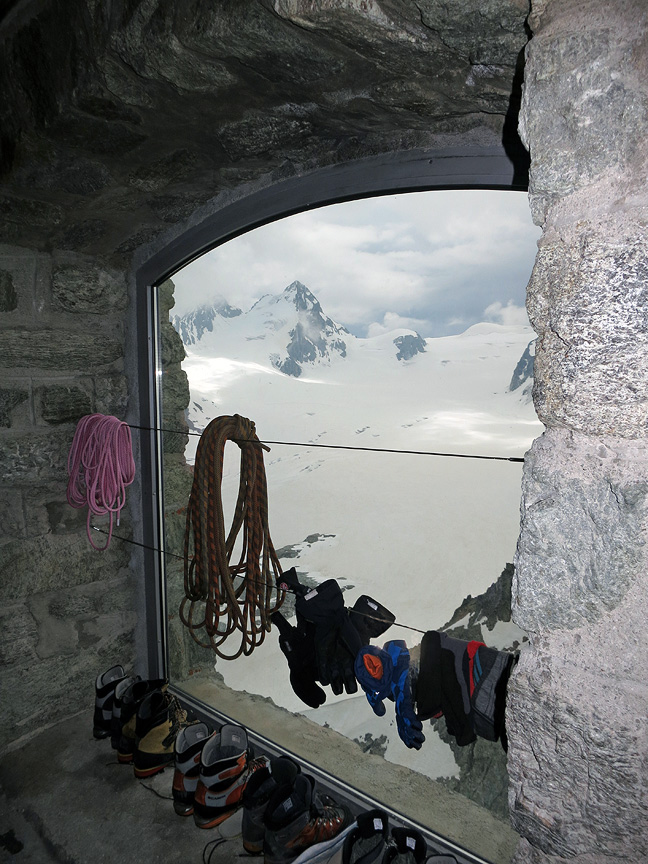 We headed next to Arolla, for a bit of a "break" from hut living, and did a side trip up to check out the Vignettes hut for lunch. A bit cloudy, and we did get rained on, but it was worth it! What a place. |