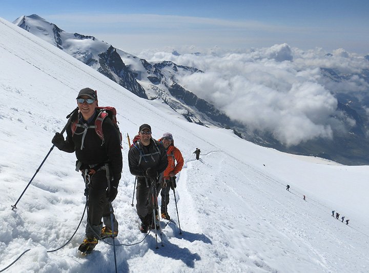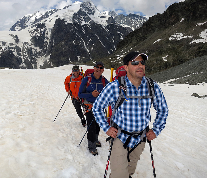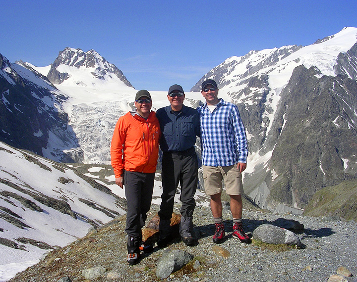 Don Winter and his sons Ben and Jon, joined Kathy in early July for a private glacier trek between Chamonix and Zermatt. |