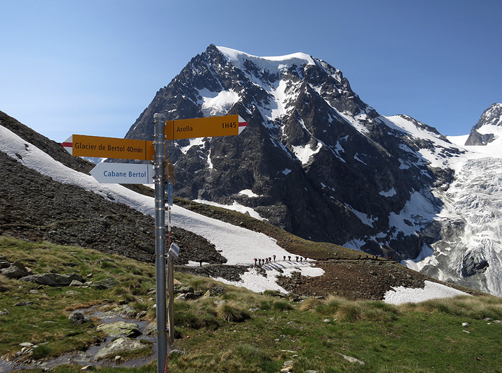 Mont Collon, from the Plans de Bertol. Another group arriving from the glacier. |