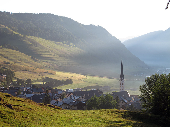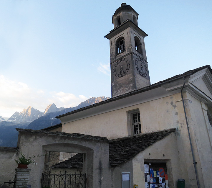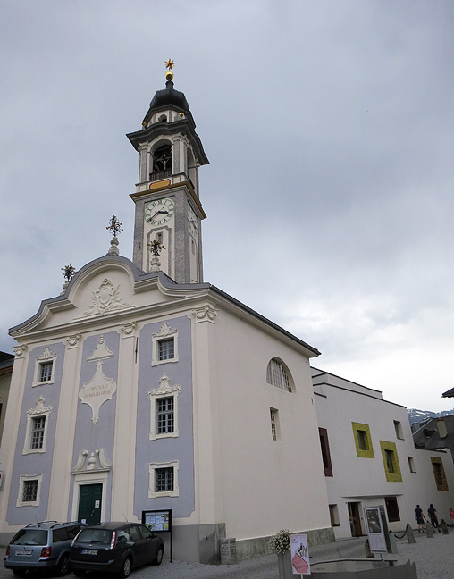 Our day's walk ended in the village of Samedan, whose beautiful Protestant church dates from the 1700s. |