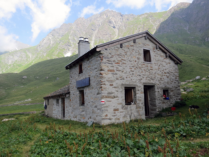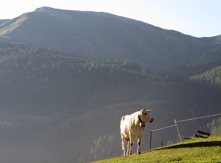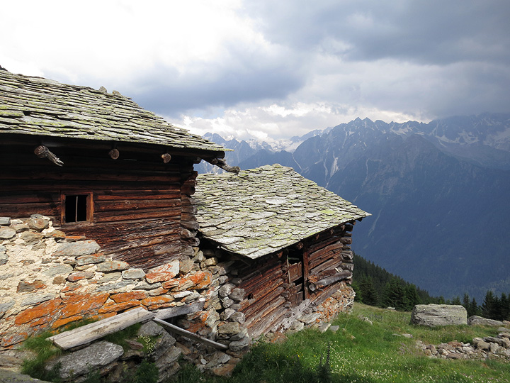 High up in the afore-mentioned Val Maroz, a remote outpost serves as summer home to a herdsman. Several seriously protective dogs help him deter the tourists and keep the cows in order. |