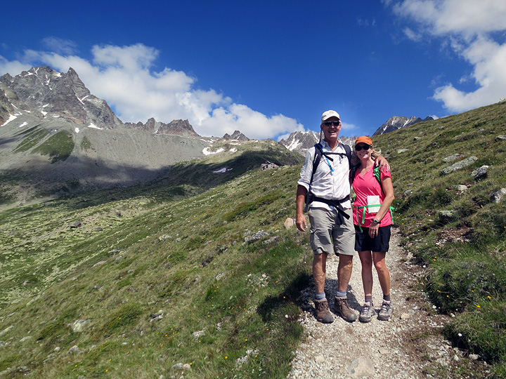Grant Carnie, of Denver, CO, organized a group of his friends to come trekking with Kathy in the gorgeous Engadine Valley of Switzerland. The week was full of "greats": the walks, the views, the food, the company, the experiences. Even the weather, mostly! |