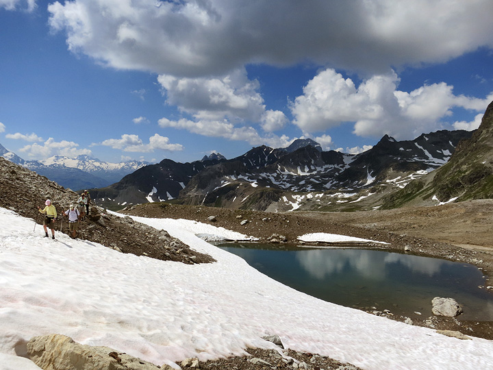 Our second day's hike took us into a remote high valley, after crossing a pass still slowly melting out from under this year's epic snow cover. |