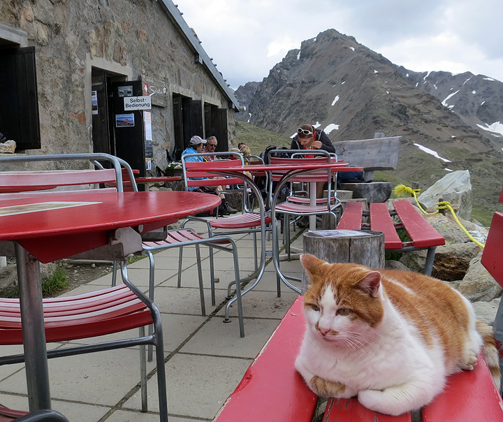 We make the acquaintance of this, the guardian of the Segantini hut, where we stopped for coffee and some of the region's specialty barley soup. |