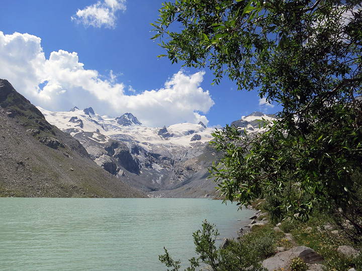 Piz Glüschaint and its neighbors from the shores of the "Glacier Lake", Lej da Vadret. |