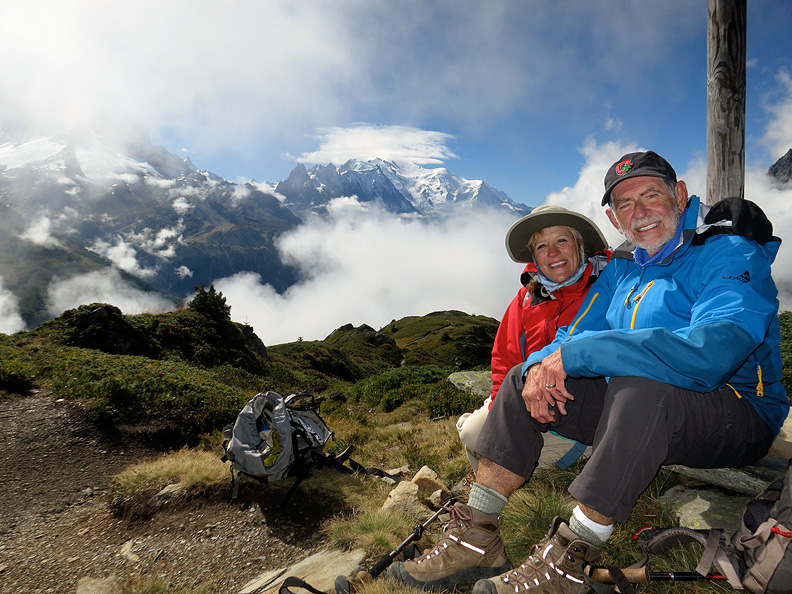 Bob and Mary on the day we left Mont Blanc and the Chamonix valley behind. |
