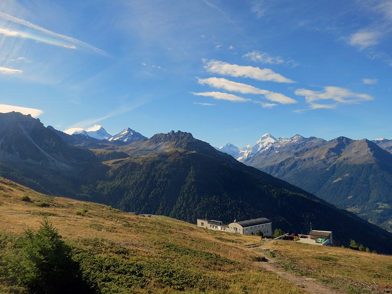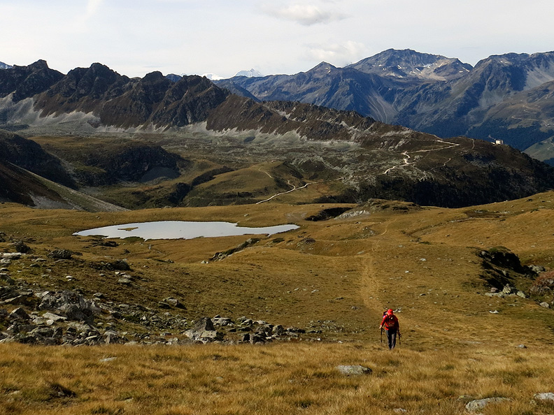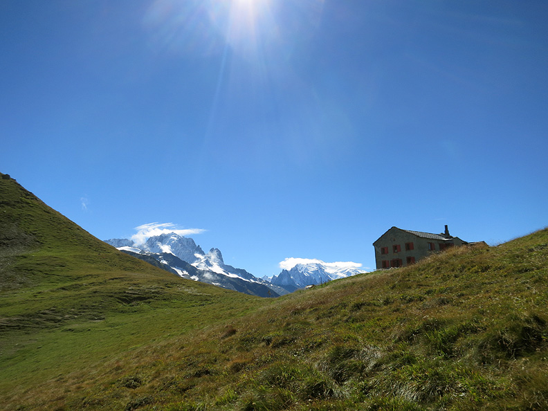 Views of the high peaks reward us along the way. Mont Blanc de Cheilon in the background here. |