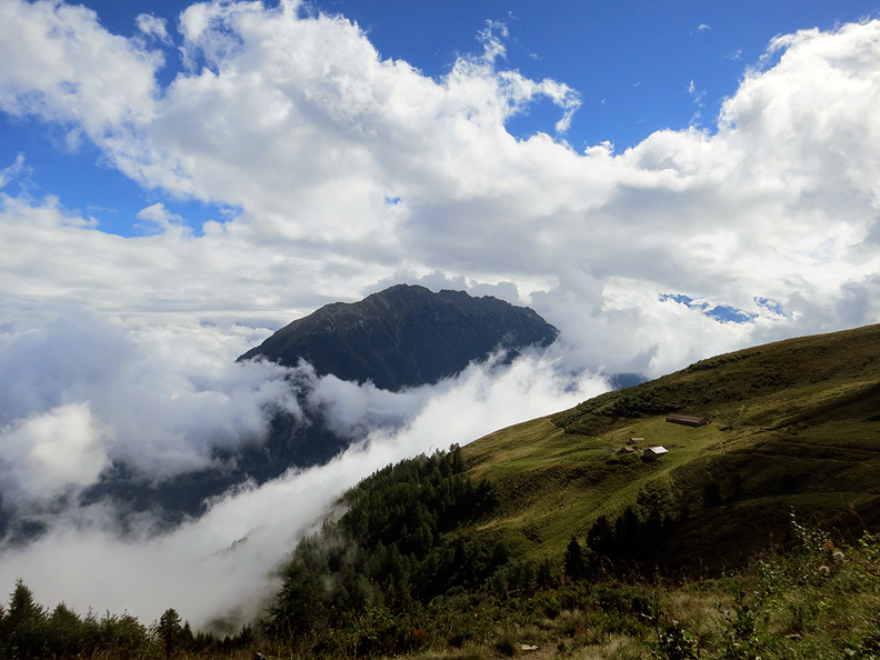 Another morning starts off sunny, but it's not forecast to last. We start out from the meadows above St. Luc. |