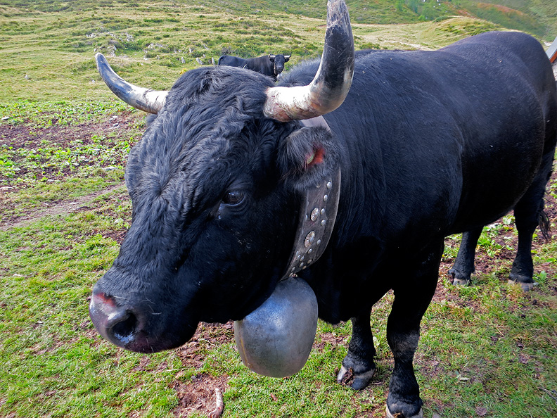 A herd of the famous "vaches d'Hérens", the fighting cows of the Alps, justifies the name of this spot. This particular gal was fired up and ready for a bout! After a few alarming reactions to our attempts to scratch her forehead, we gave her a wide berth and were on our way. |