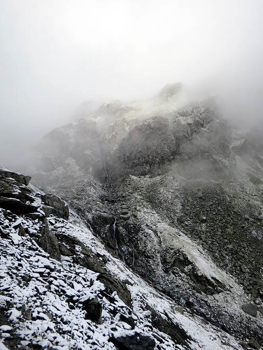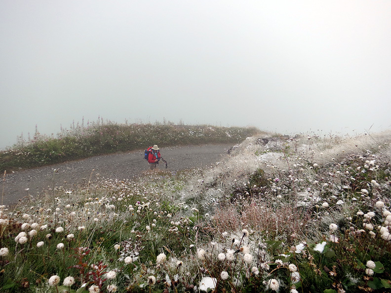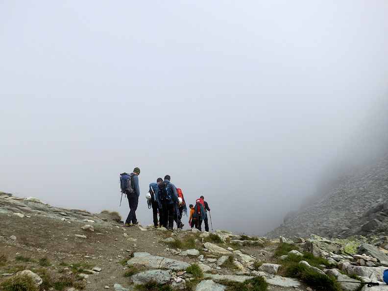 It's back into the fog as we start our hike down the other side, into Arolla. |