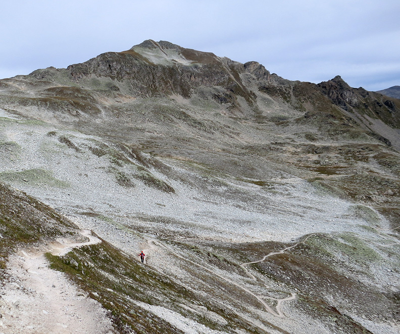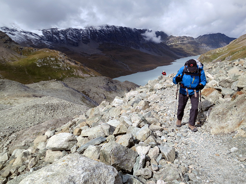 The descent into the Turtmann valley starts off stony and austere. |