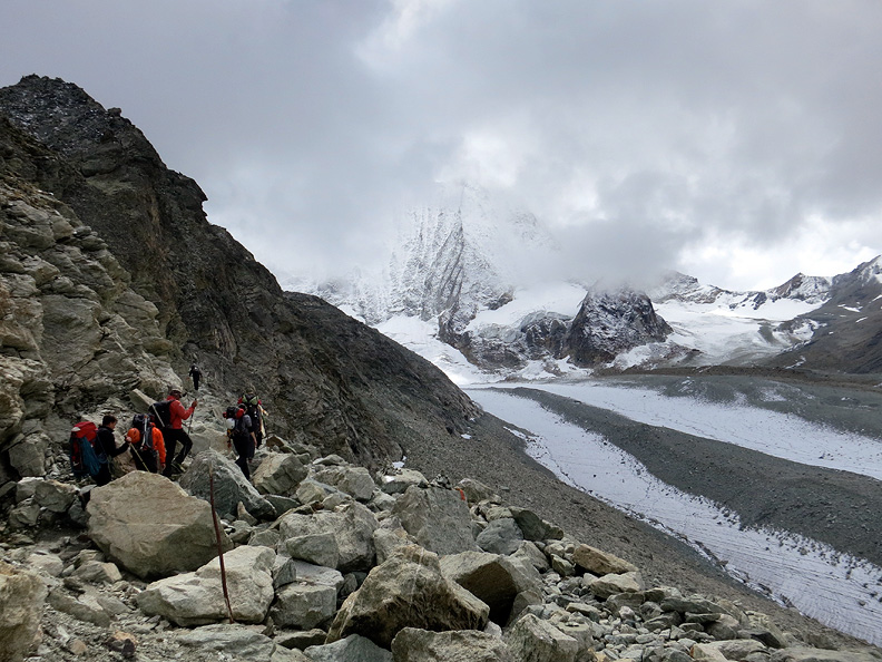 Heading up to the Prafleuri hut, the mountains look forbidding indeed. |