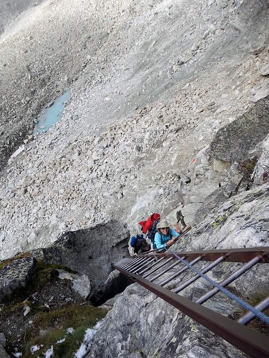 Approaching the vertical ladders at the Pas du Chèvre. |