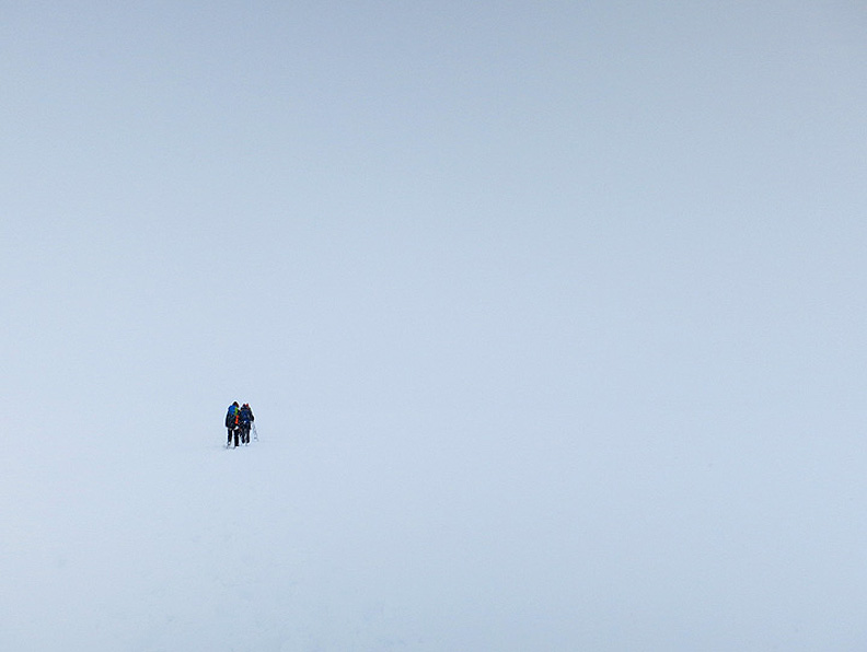 We declared this (where the heck are we anyway???) our high point as the first flakes began to fall and the wind to gather force. |