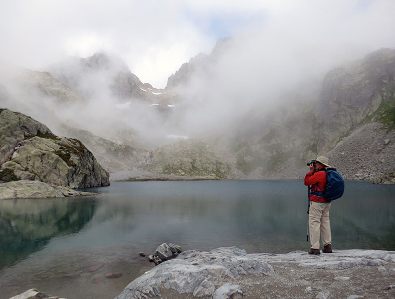 We were in and out of mists all day, but Lac Blanc emerged from the fog in time for a few shots. |