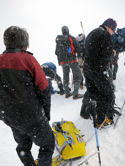 Starting up Pollux, with crampons and fully decked out in our winter coats. |