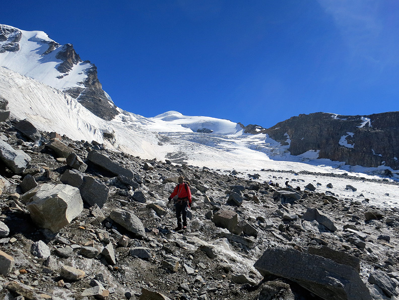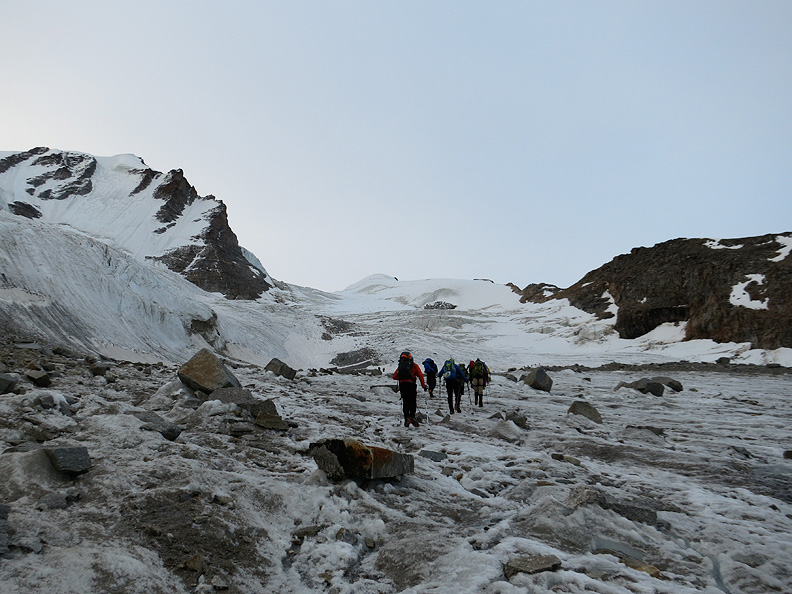 Higher up on the glacier, we are almost out of the cold shadows. |