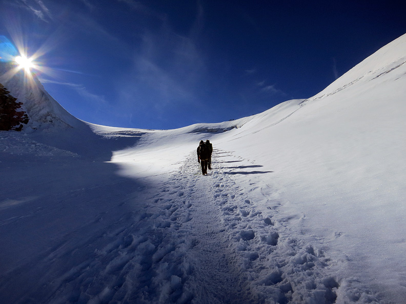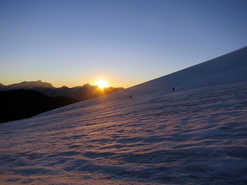 The next morning we were well up on the glacier before the sun cleared the horizon. |