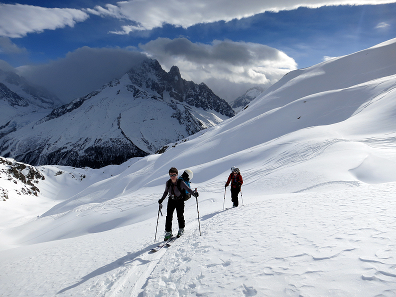 On our first day, we toured above La Flégère toward the Col du Dard. Though the weather was quite nice, we could see the clouds announcing a change to come. |