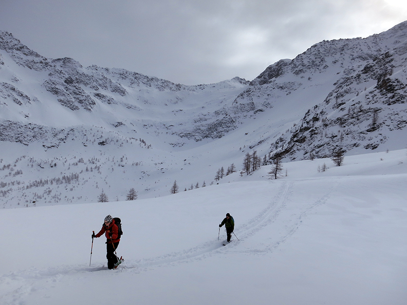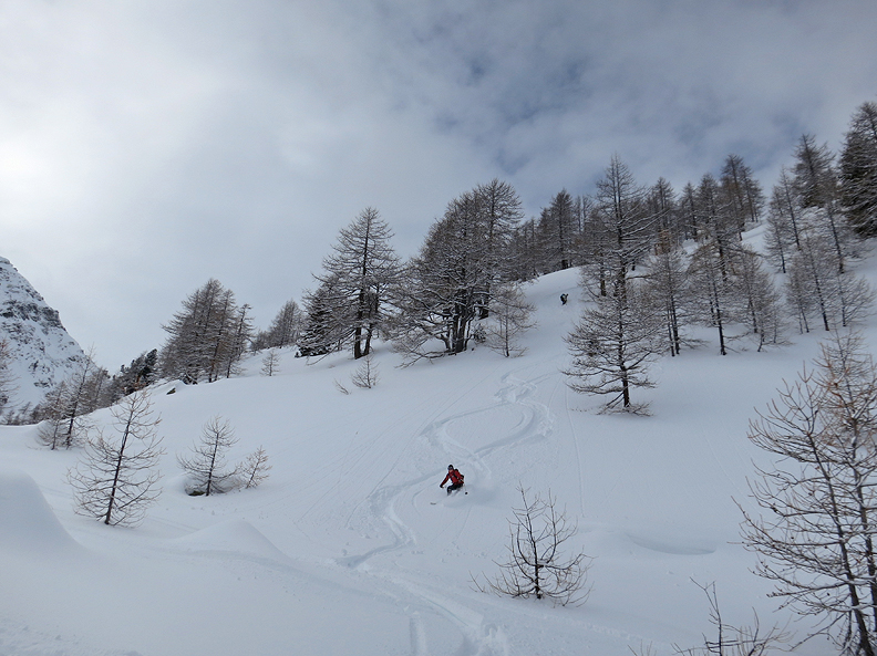 A couple of large groups had an earlier start, and we had the benefit of their excellent skin track up through glades and bowls. |