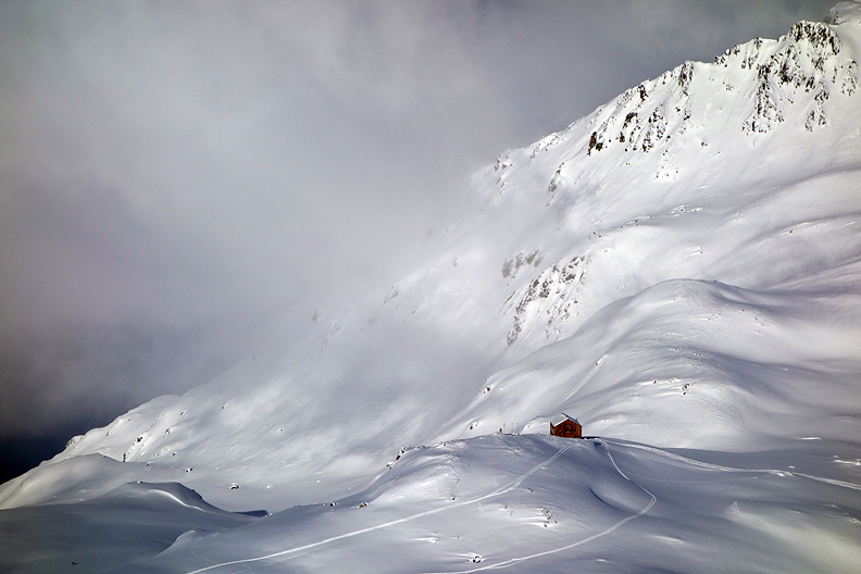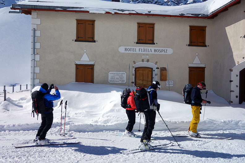 But at last we reach the snow covered road at teh Flüela Pass hospiz. |