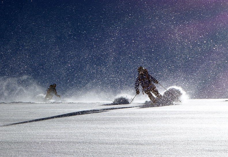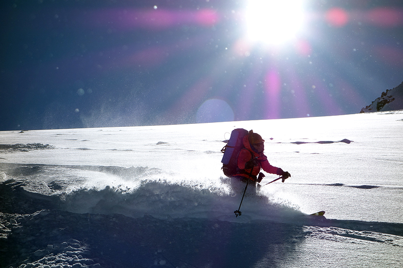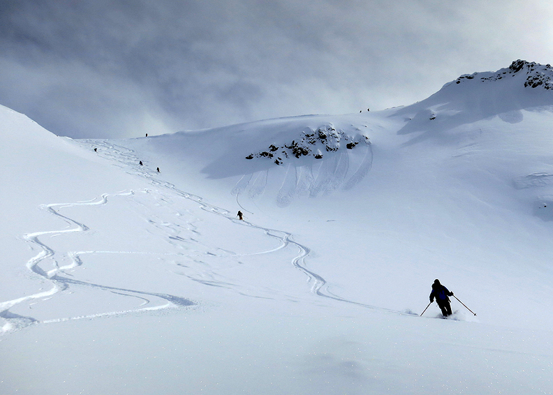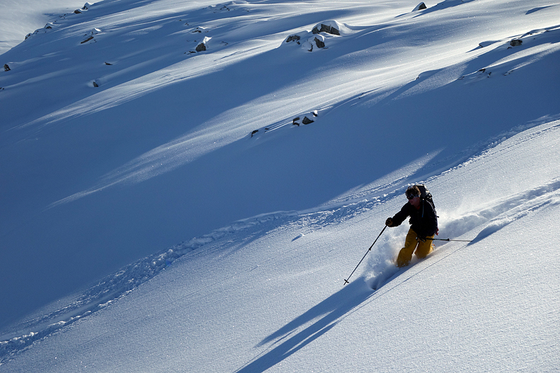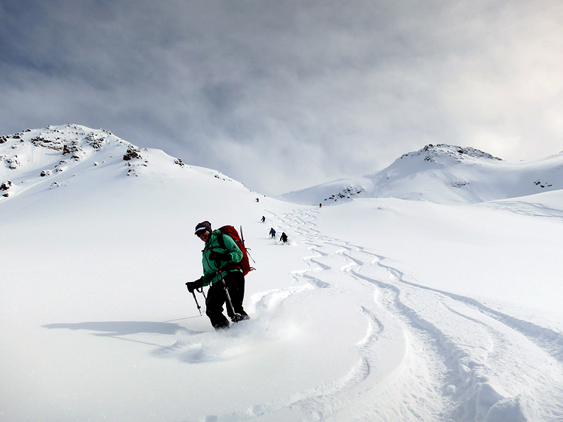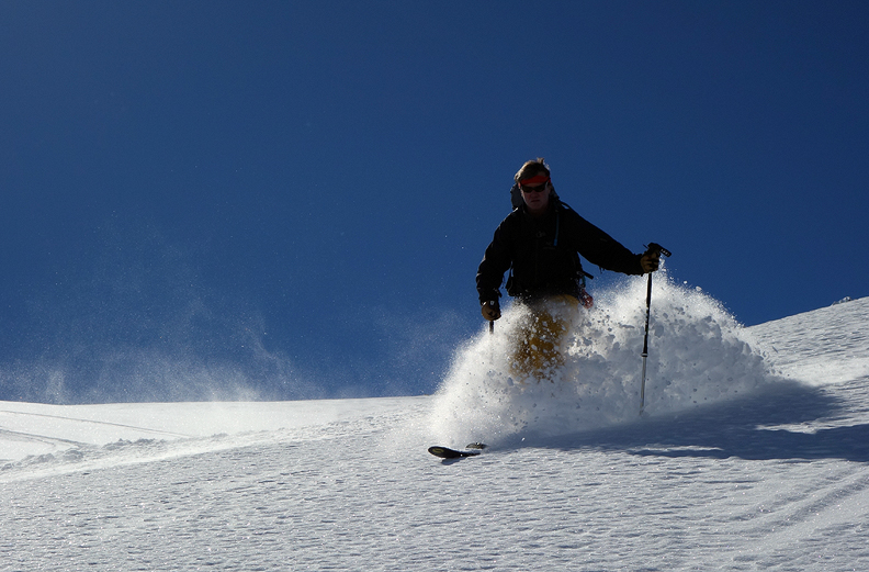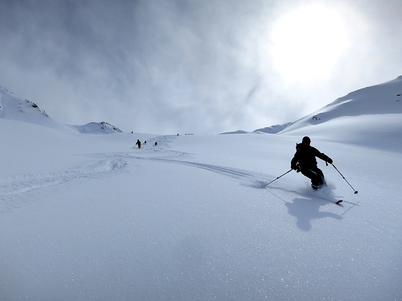 At last, we begin our descent. The snow is as light and fluffy as we could hope for! |