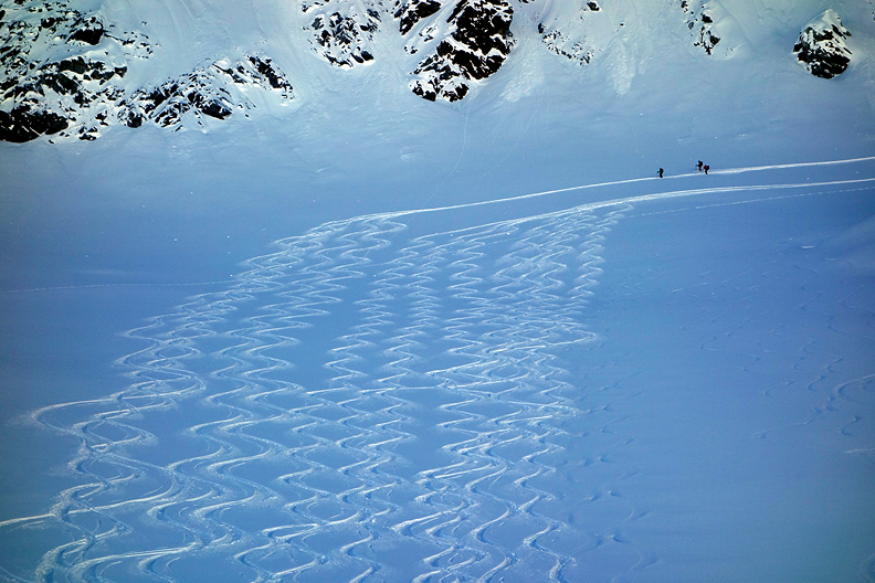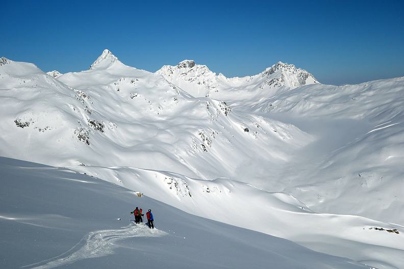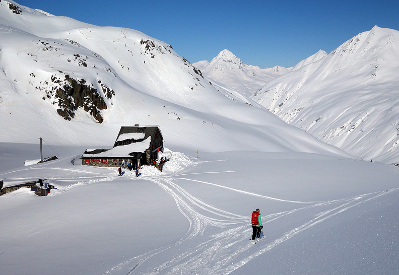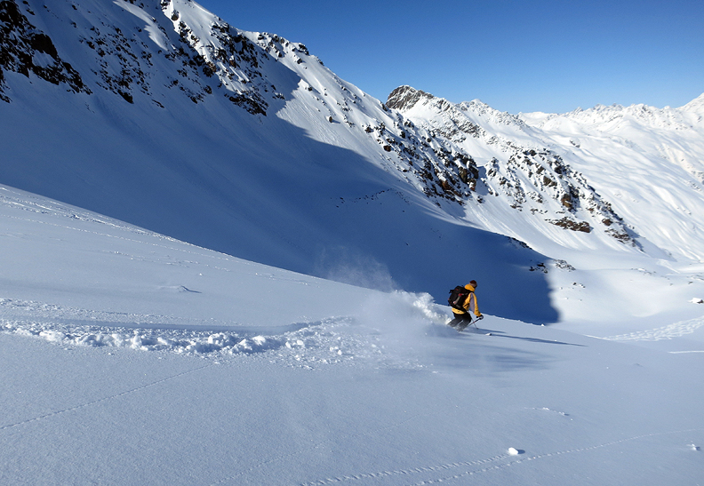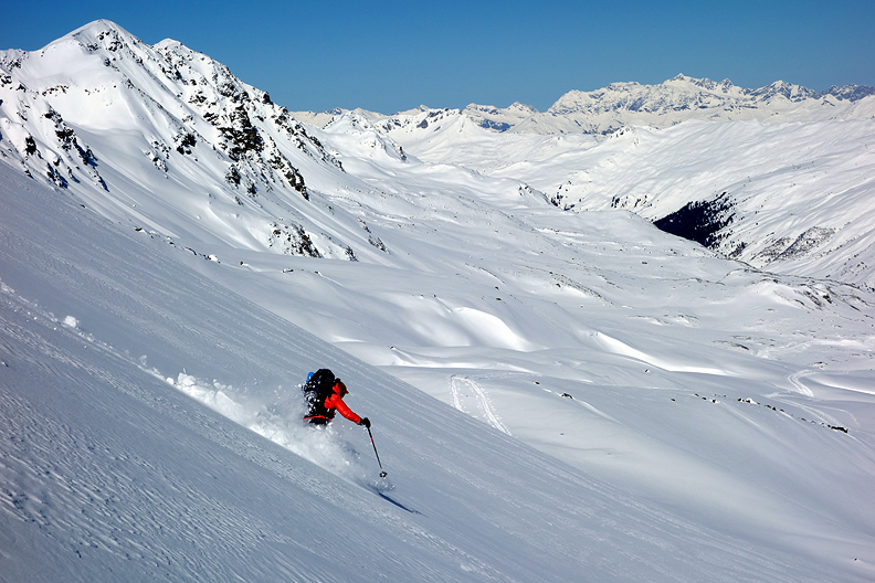 But wait! The fun's not over! We still have a good descent into the Grialetsch hut, and the snow is beautiful here too! |