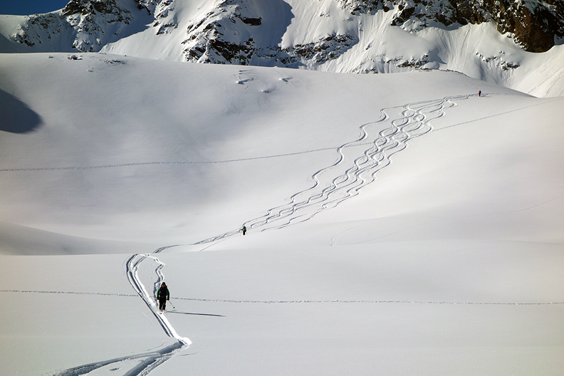 The snow is enticingly light as we gain elevation. |