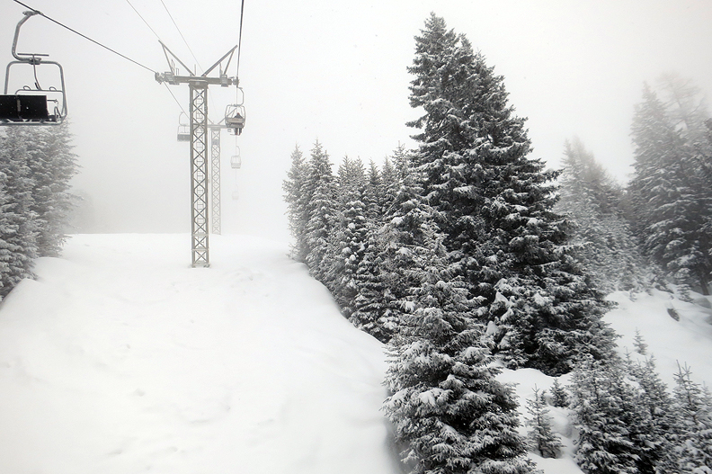 Chairlifts and a drag lift get us high up on the Alp Darlux, saving us a good 1000m of climbing. |