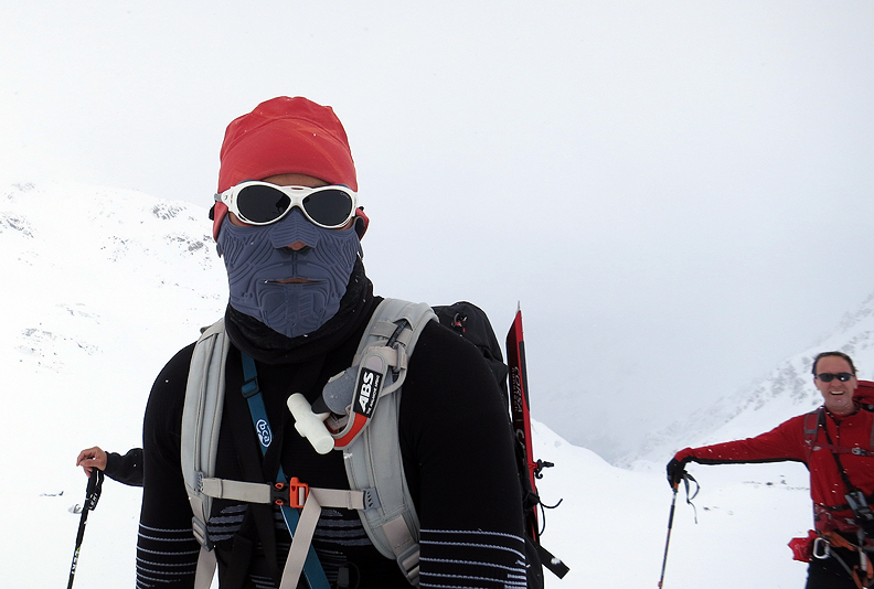The next morning, we headed up to see what we could do in yet another snowstorm. Scott is ready for anything, if rather frightening looking! |