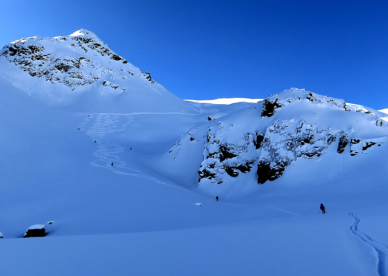 But then at last it's time to head up again. We come around a ridge high on the Schwarzkopf. |