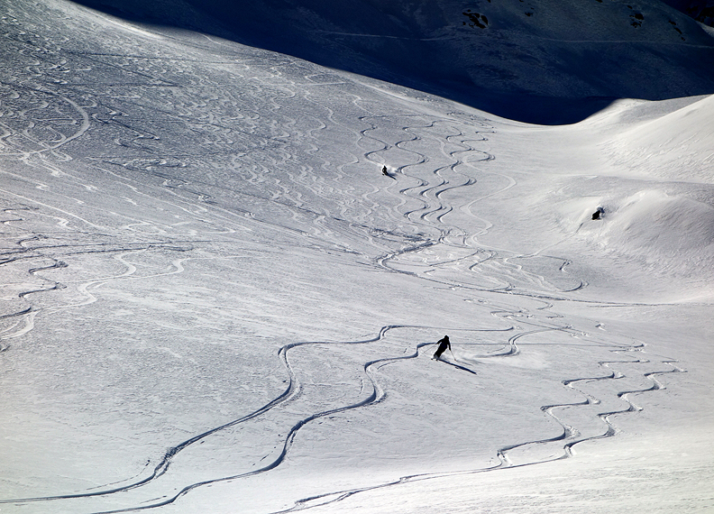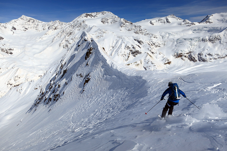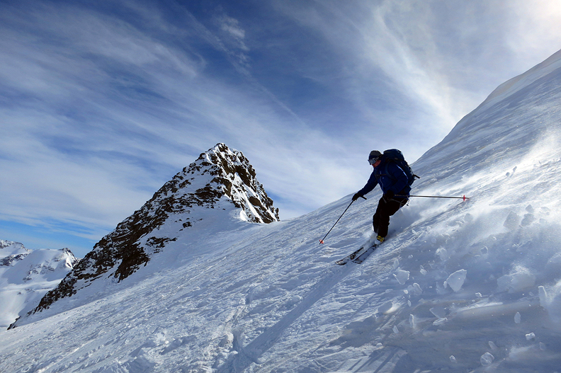 Early March brought us back to the Ortler region, to ski with four buddies from Norway. We found the terrain buried deep in a very fat snowpack this year. |