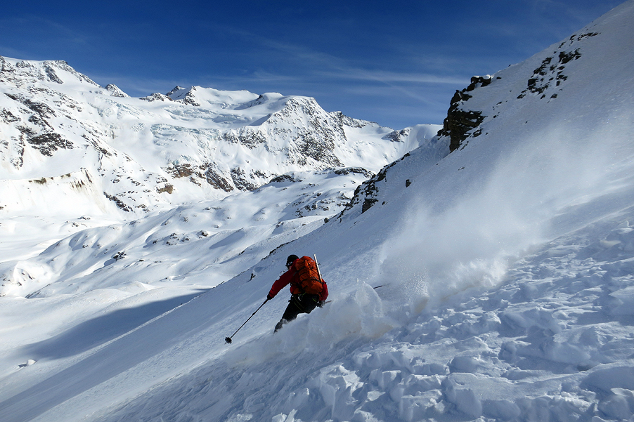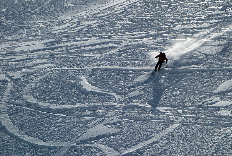There was some nice terrain on the descent, and snow both soft and steep. |