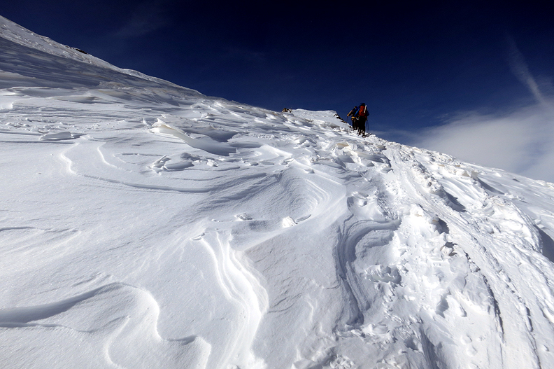 A small cornice to surmount to gain the ridge... |