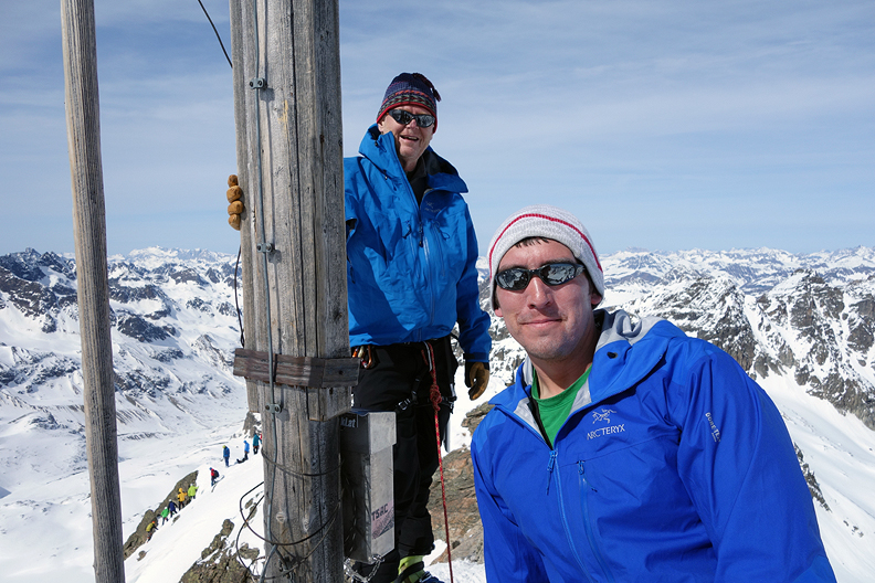 Sharing the summit of the Hintere Jamspitze with other revelers. |