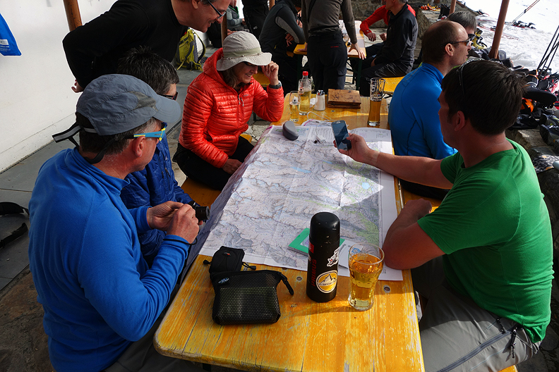 Back at the "ranch", the map comes out to re-live the trail traveled, and plan the next days. |