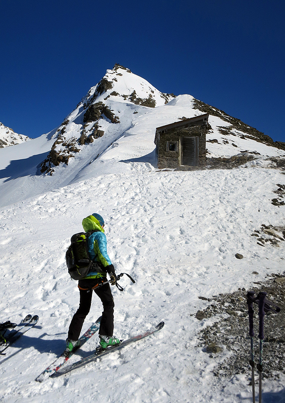 Reaching the col and the ski depot. |