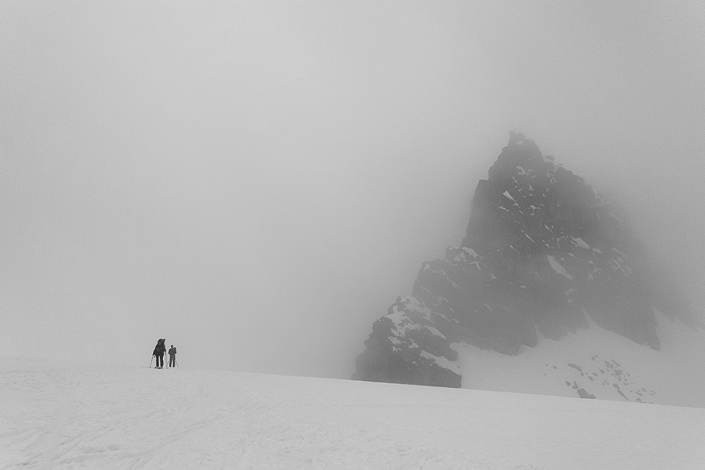 And we continued on to the Prafleuri hut. Nearing the Rosablanche in the persistent murk. |