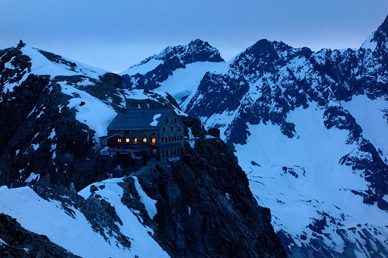 Early morning at the Argentière hut; the look of the sky promises a much nicer day! |