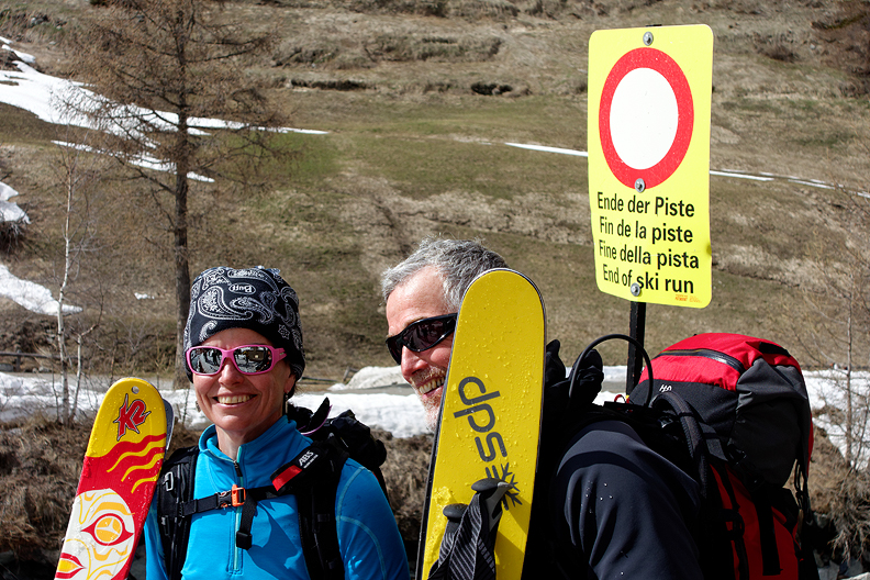 And onto the pistes, and down to town and... we made it!!! In Zermatt right on schedule! End of ski run, we take our last steps on cobblestones and pavement. |