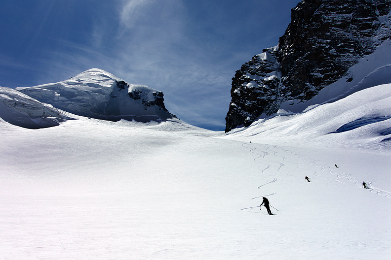 It's April, time to leave Chamonix behind en route to Zermatt! Joining us, the following crew of strong skiers: |