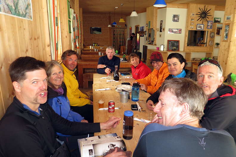 The scene at the busy Prafleuri hut the next morning, another sunny one is on the way. |