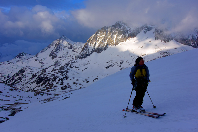 Beautiful light, and decent snow conditions for this traverse. |