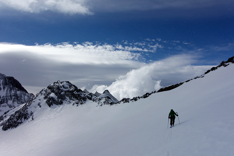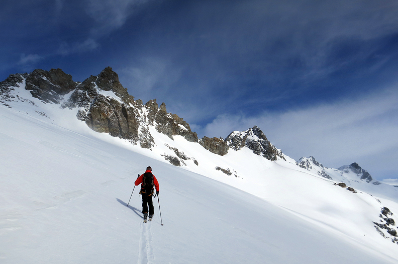 Our first climb is a 300m skin up to the Col de Gébroulaz. |