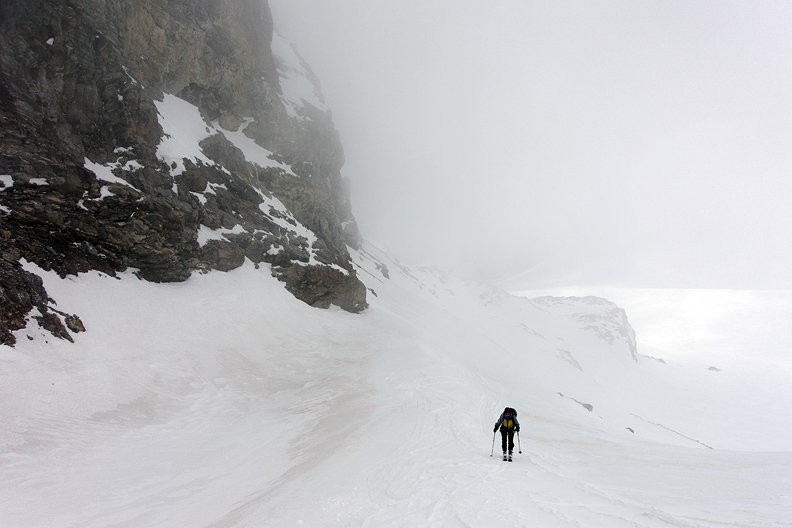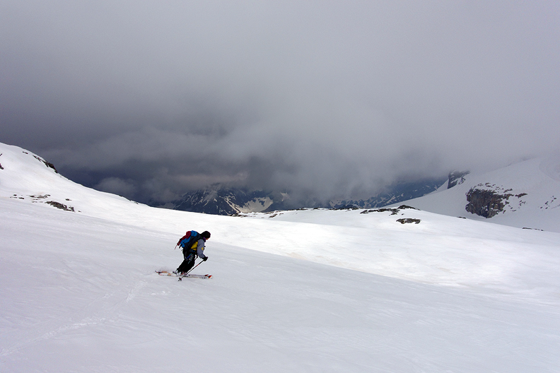 Though quite steep in places, we made it through to the Dome des Nants just as the clouds came and engulfed us once more. |