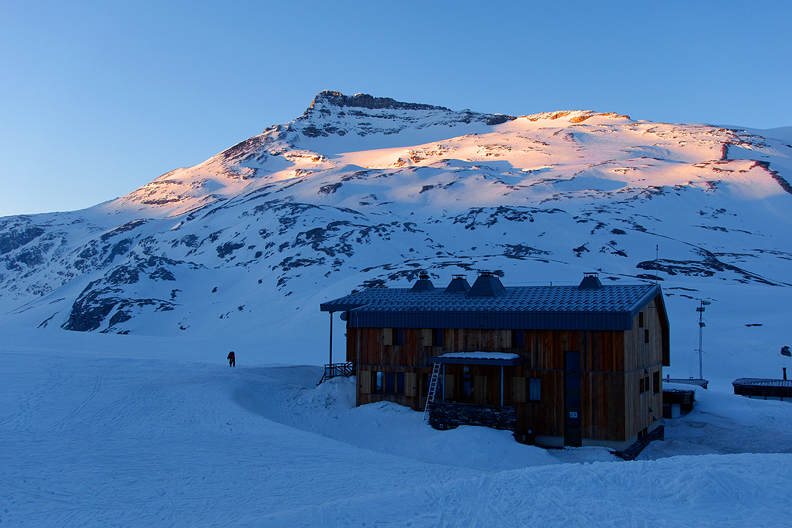 Evening light from the porch of the cozy and friendly Refuge du Fond d'Aussois. |